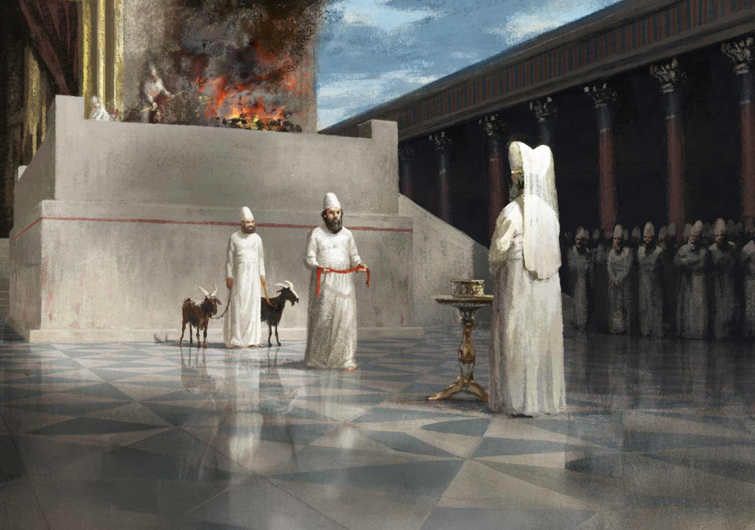 Ancient Jewish and Christian sources frequently viewed the Jerusalem Temple as the meeting place of “heaven and earth,” describing it as a microcosm of the cosmos. For example, the Book of Jubilees refers to Zion as “the navel of the earth,” emphasizing the Temple’s cosmic centrality, while 1 Enoch pictures a “blessed place” at the middle of the earth, understood as Zion, “where heaven and earth meet.”1 The Psalmist explicitly draws this connection: “He built his sanctuary like the high heavens, like the earth which He has founded forever.” (Psalm 78:69)